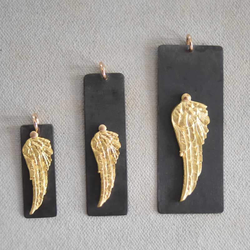 The Angel Wing is a symbol of protection, affection, and harmony. This Angel Wing is on the medium sized back plate that we offer and is sure to make a statement.