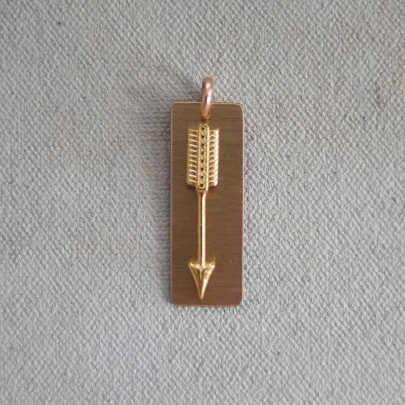 The Arrow pointing down is a symbol of peace and harmony. The perfect charm to add a lightness and positive feeling towards the wearer. The Arrow is centered on larger back plate.