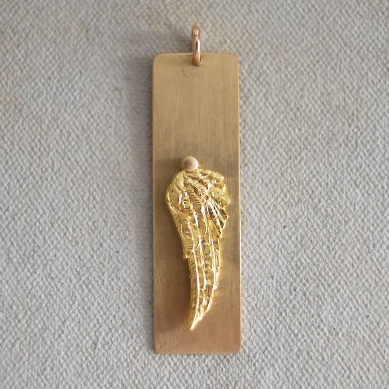 The Angel Wing is a symbol of protection, affection, and harmony. This Angel Wing is on the medium sized back plate that we offer and is sure to make a statement.