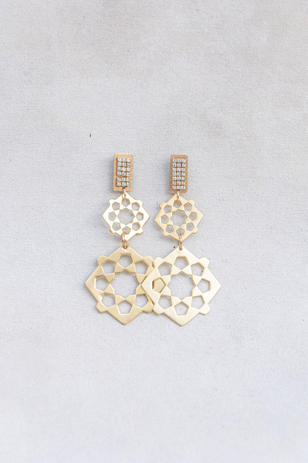 * These earrings are made from plated brass and will darken over time. We recommend storing earrings in their dust bag while not in use, and avoiding contact with water, perfume, hairspray, and other chemicals to avoid tarnishing.