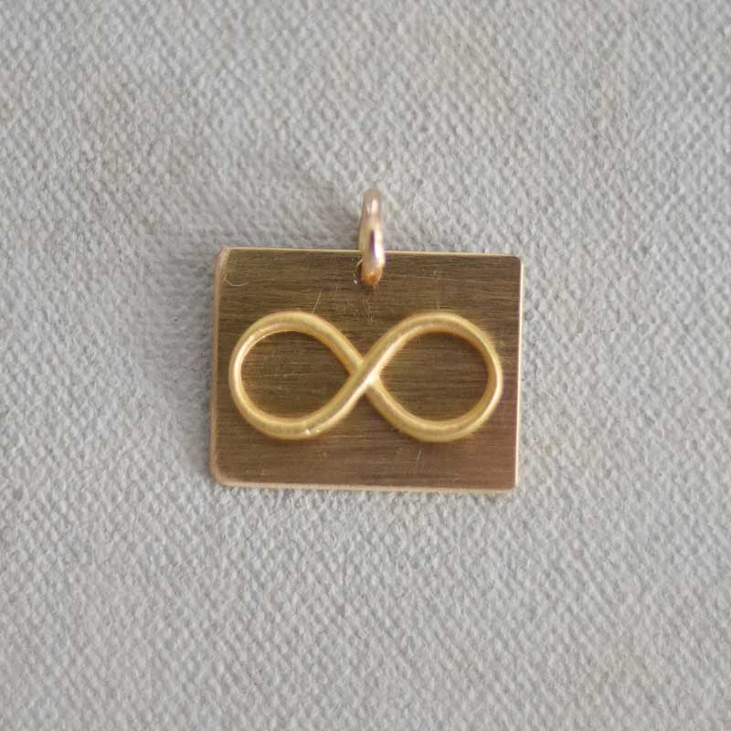 The modern day infinity symbol expresses eternity and everlasting love. While the original meaning of the infinity symbol holds an ancient belief of perfection, duality and empowerment. Our infinity is on our smaller rectangle shaped back plate to add a different texture to our Charm Necklaces.