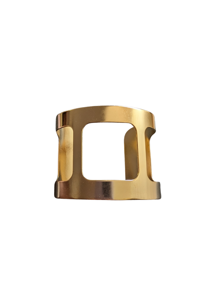 Our Signature Gold Plated Brass Cuffs with square cutouts in the middle.