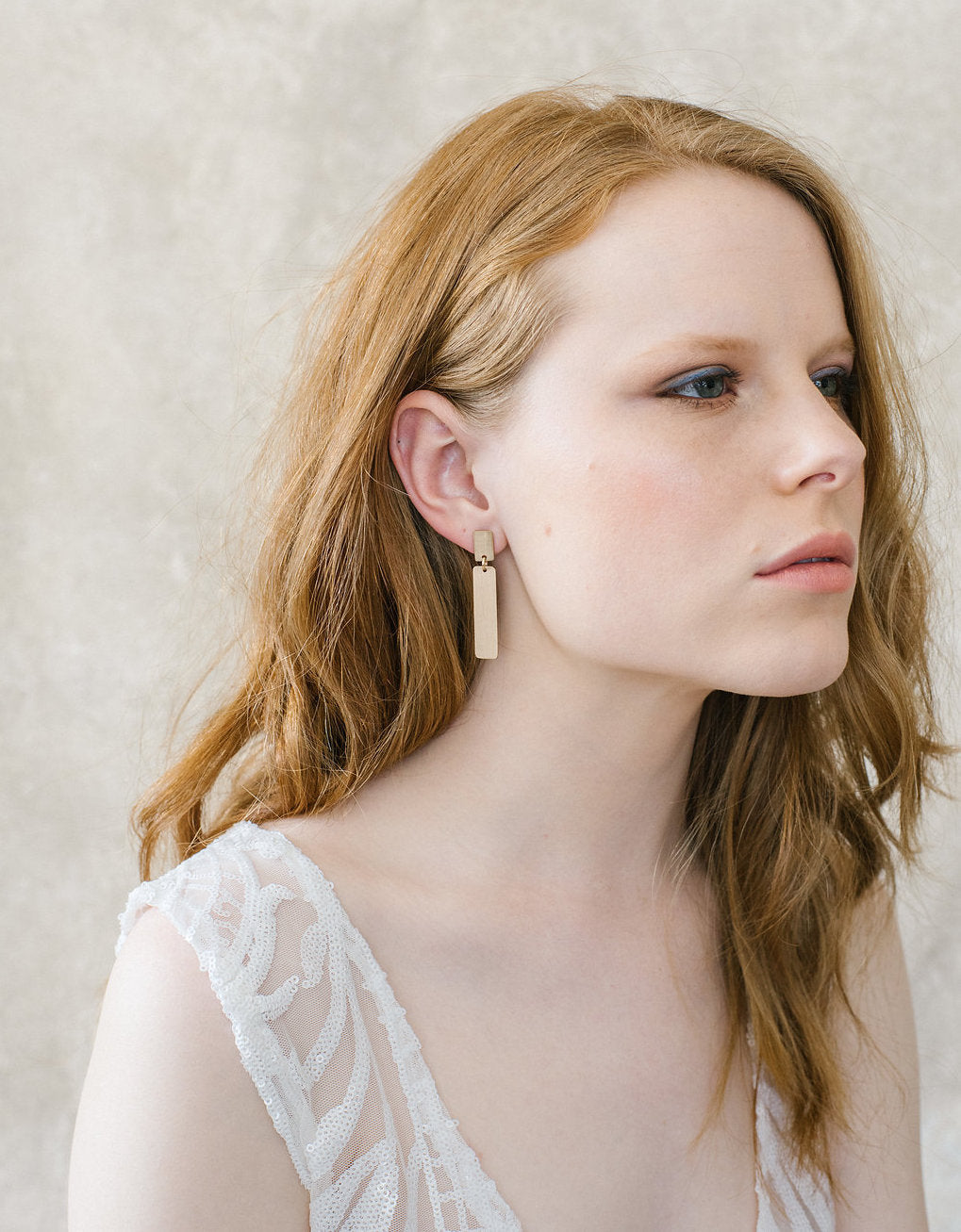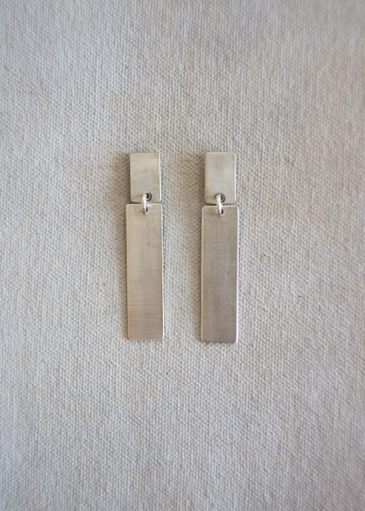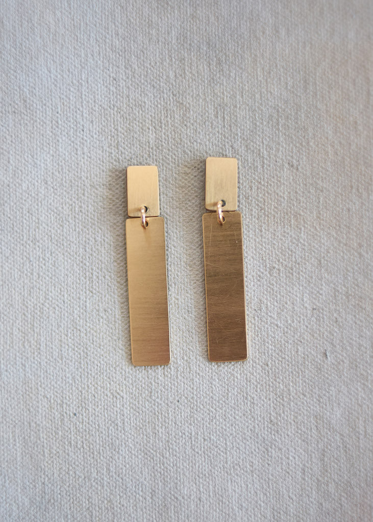 The Daily is a sweet stud style earring with a rectangle dangling below.